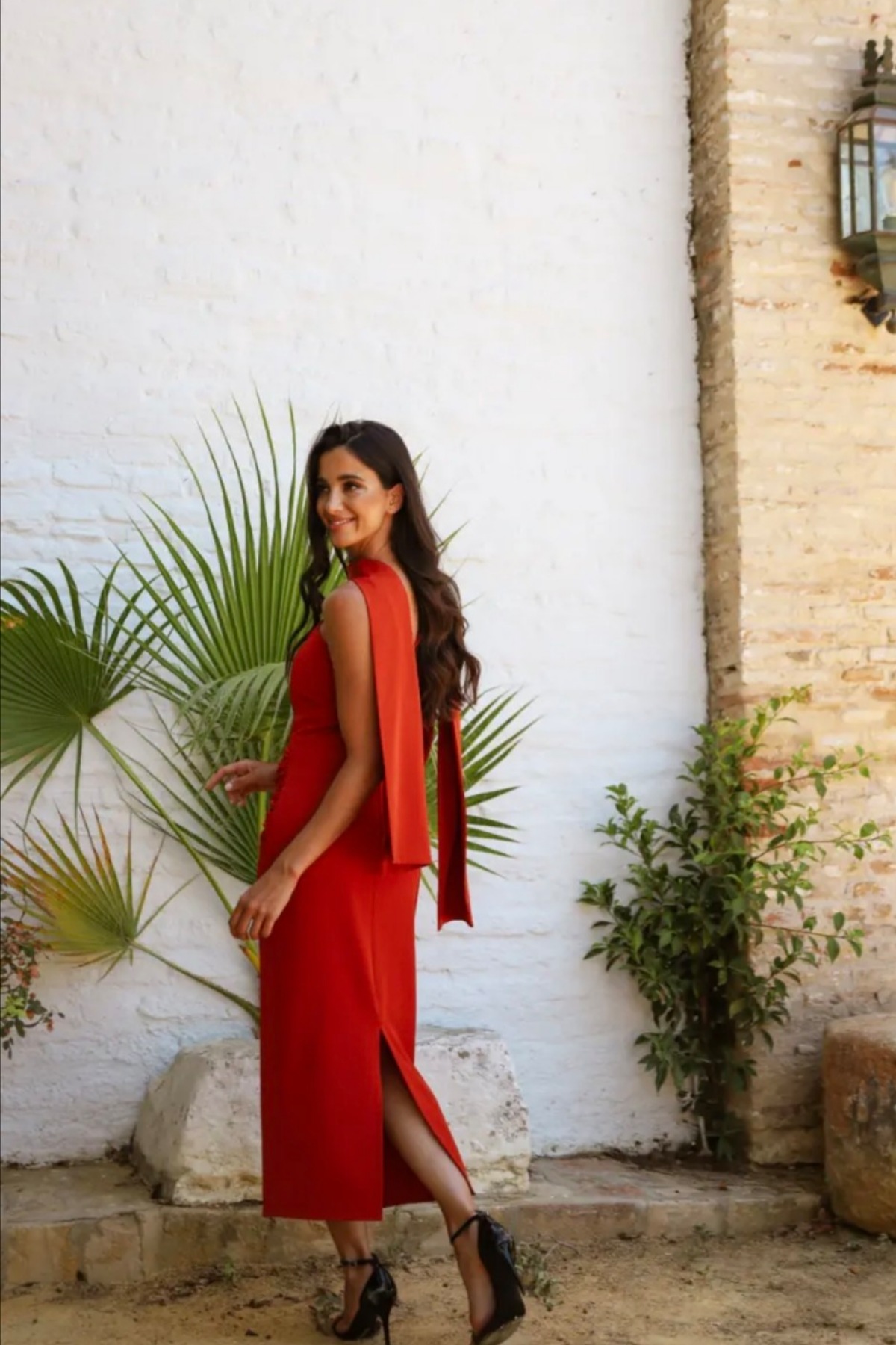 Destacamos su lazo que pasa por el cuello y cae por la espalda.